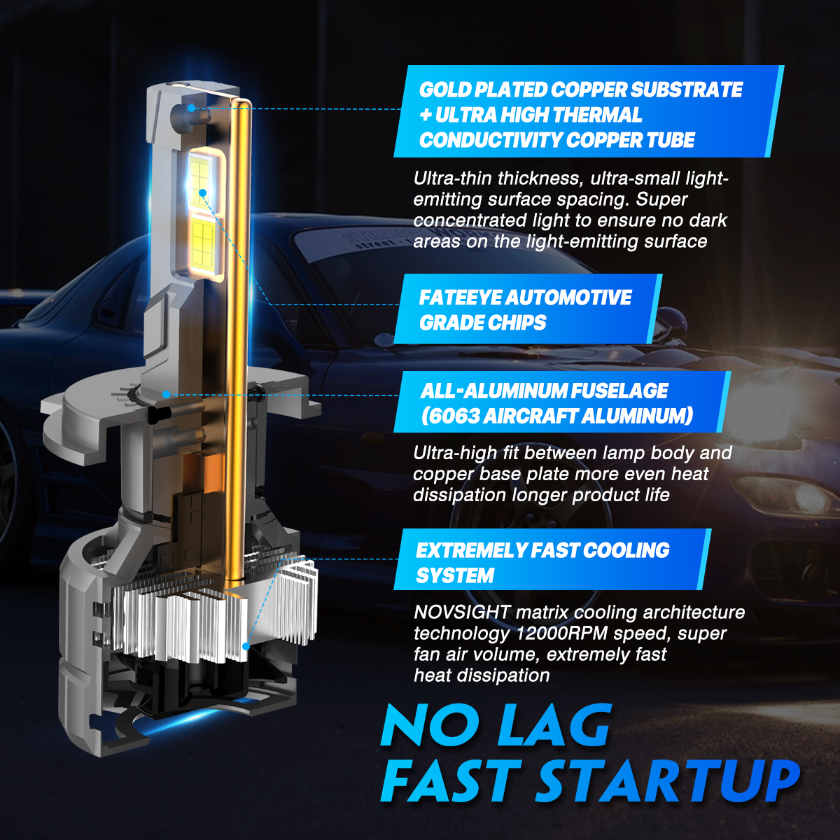 • Novsight N60 LED bulbs feature advanced lighting technology, 200 watts, 40,000 lumens of light output, giving you 900% of the light output. The brightest alternative to halogen bulbs..