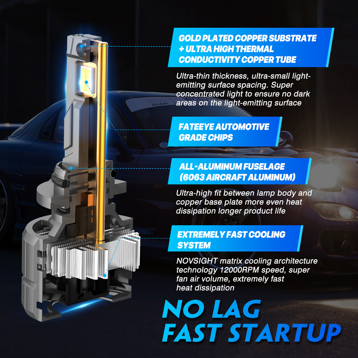 • Built-in copper base plate is equipped with double thermal conductive copper tubes, and the heat dissipation efficiency is increased by 600%. The high-speed rotating fan and one-piece aerospace aluminum design extend the life of the N60 LED light to 100,000 hours..