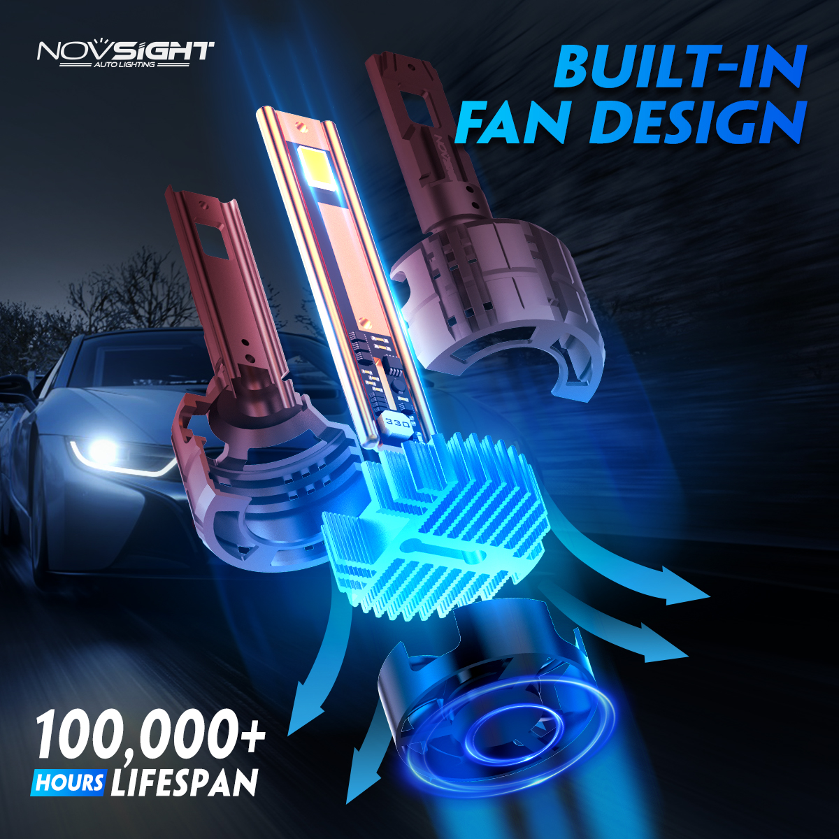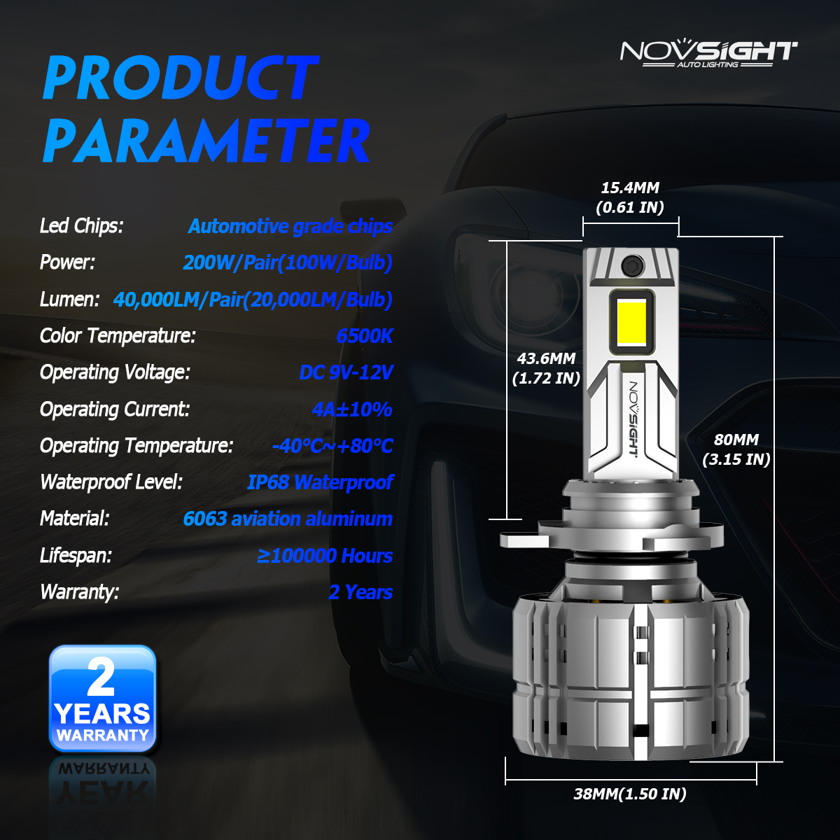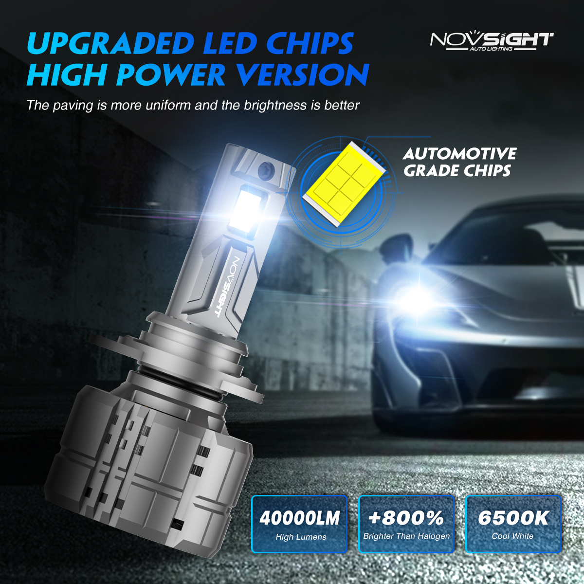 • Novsight N60 LED bulbs feature advanced lighting technology, 200 watts, 40,000 lumens of light output, giving you 900% of the light output. The brightest alternative to halogen bulbs..