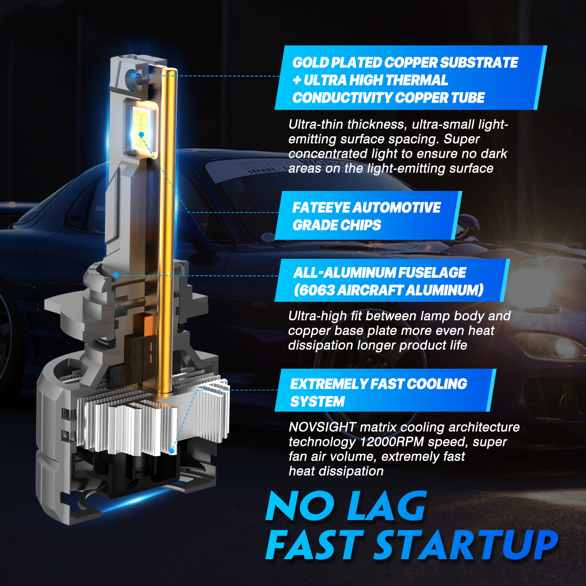 • Built-in copper base plate is equipped with double thermal conductive copper tubes, and the heat dissipation efficiency is increased by 600%. The high-speed rotating fan and one-piece aerospace aluminum design extend the life of the N60 LED light to 100,000 hours..
